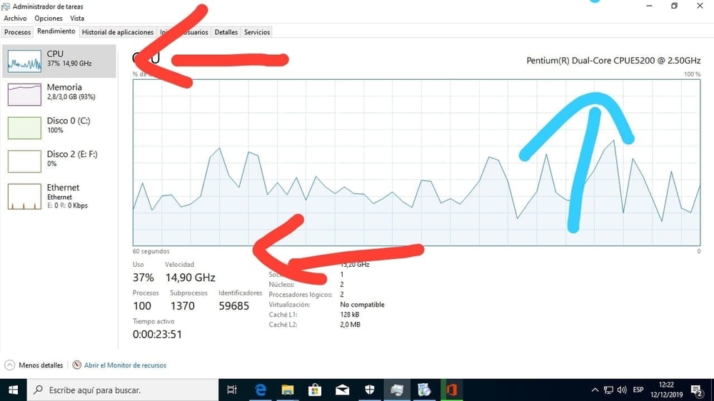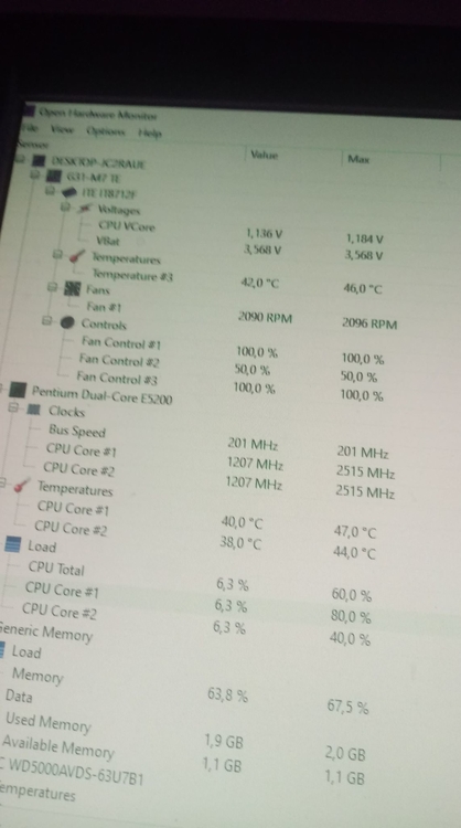 Hola buenas, creo este tema para ver si alguien tiene el conocimiento para ayudarme con un problemita. Bueno lo que pasa es que estaba armando un pc para un cliente con una placa que tenía guardada se trata de socket lga 775, bueno, para esta placa tenía 2 posibles procesadores, un pentium e5200 y un celeron no recuerdo el modelo. Por las mejores especificaciones elegí el pentium, formatee el pc y todo bien, una vez formateado noto que la computadora tenía una extraña fluidez comparada a una i5 de cuarta generación o minimo una i3 de estas, abro el administrador de tareas para ver el consumo, ps se me hacia raro que consumiera tan poco para "volar". Cuando vi el rendimiento me veo con una super sorpresa debido a que el procesador estaba a una velocidad de 15ghz!. Esto me desconcertó demasiado ya que el procesador es solo de 2,5 ghz no puede llegar a más, bueno después de probarlo por unas horas decidí comprobar la bios pero esta a mi punto de vista no debería afectar ya que puse la configuración por default. Después de eso instale el gta sa y aquí es donde me doy cuenta que debe haber algun error, ya que el gta sa me corrió a 30 fps bajando a 15fps. Esto claramente es una falla pero no se a que se deba ni que puedo hacer, es la primera vez que me topo con algo así, y revise las temperaturas y no superan los 50 grados. PD: disculparan la mala calidad de algunas fotos, la cámara de mi cel está bastante deteriorada