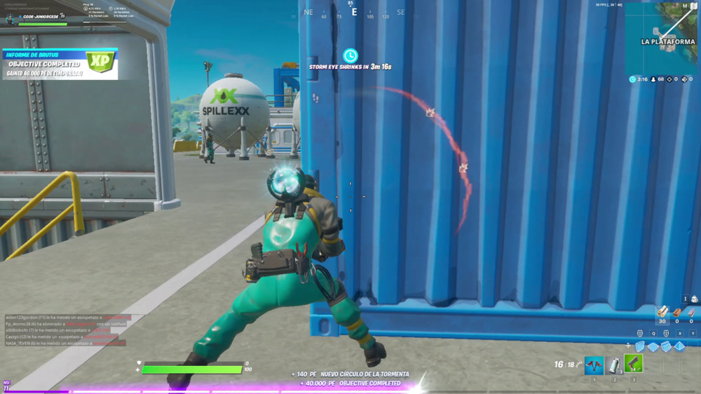 Los desafíos del Informe de Brutus son los de la Semana 1 de la Temporada 2. Y esta es una guía de como conseguir realizarlos. Primero que nada dejaremos la lista de los desafíos y posteriormente iremos detallando cada uno de ellos. Estos son los deafios de la Semana 1 de la Temporada 2 de Fortnite 2: Aterriza en Faro de Lockie, Apres Ski y Monte Kay (0/3) Inflige daño a secuaces (0/2 000) Abre puertas cerradas por un escáner de ID en partidas distintas (0/3) Permanece agachado a 20 m de distancia de un secuaz despistado un total de 10 segundos (0/10) Registra cofres en la Gruta o en el Tiburón (0/7) Registra cajas de munición en una misma partida (0/7) Disfrázate dentro de una cabina telefónica en partidas distintas (0/3) Lanza distintos objetos de escudo o de curación (0/3) Elimina jugadores con un total de 100 de salud y escudo o más (0/5) Inflige daño con 2 armas diferentes en un plazo de 10 segundos (0/1) Antes de realizar cada uno de estos desafíos debemos de tener algunas cosas claras: ¿Cuales son las nuevas zonas de Fortnite El Tiburón, El Yate, La Agencia, La Gruta y La Plataforma? Aquí te dejamos una imagen con la localización exacta de estas nuevas zonas, donde realizaremos algunos desafíos de esta semana ¿Qué son los secuaces y donde encontrarlos? Los secuaces son una de las grandes novedades de la Temporada 2 de Fortnite Capítulo 2. Se trata de enemigos controlados por el juego que aparecen únicamente en los modos de juego normales (En Solitario, Dúos y Escuadrones). Los secuaces se dedican a patrullar por la zona y defenderla, y se volverán hostiles si nos ven. ¿Qué son las Cabinas Telefónicas y Escáner de ID? Las cabinas telefónicas sirven para camuflarnos como uno de los secuaces del área en la que estemos. Mientras estamos disfrazados, podremos abrir tanto cofres de secuaces como puertas cerradas con escáner de ID. Debes tener en cuenta que las cabinas telefónicas y las puertas cerradas con escáner de ID solo aparecerán en los modos de juego En Solitario, Dúos y Escuadrones. Aterriza en Faro de Lockie, Apres Ski y Monte Kay Para completar este desafío debemos aterrizar en tres puntos del mapa, sin importar el modo de juego o si es en una misma partida o a lo largo de varias, yo recomiendo hacerlo en refriega de equipos, ya que aqui podremos desplegar el ala delta y aterrizar en los 3 lugares a lo largo de la partida. A continuación dejo foto del mapa con los 3 puntos: Inflige daño a secuaces Para completar este desafío debemos infligir un total de 2 000 puntos de daño a secuaces, sin importar el número de partidas que nos lleve conseguir esta cantidad de daño, o el modo de juego. Simplemente debes jugar con normalidad y procura eliminar a todos los secuaces que veas. Encontraras secuaces en El Tiburón, El Yate, La Agencia, La Gruta y La Plataforma (puedes ver las ubicaciones en el mapa de arriba). Debes de tener en cuenta que los secuaces solo aparecerán en los modos de juego En Solitario, Dúos y Escuadrones. Abre puertas cerradas por un escáner de ID en partidas distintas Para completar este desafío debemos hacernos pasar por un secuaz tras habernos disfrazado en una cabina telefónica para poder abrir una puerta cerrada por un escáner de ID. Tenemos que hacer esto en tres partidas distintas de cualquier modo de juego. Debes de tener cuidado, pues chocar con un secuaz o sufrir daño hará que nuestro disfraz se pierda. Las puertas cerradas con escáner de ID están en el interior de las guaridas. Permanece agachado a 20 m de distancia de un secuaz despistado un total de 10 segundos Para completar este desafío debemos permanecer agachados diez segundos mientras estamos a una distancia igual o inferior a 20 metros de un secuaz. Para conseguir esto, os recomendamos jugar en solitario, y, en cuanto veáis a un secuaz, intentad ir agachados y permanecer cerca de él en esta postura el tiempo requerido. Si nos metemos en una cabina de teléfono nos disfrazaremos como uno de ellos, lo cual facilitará mucho el pasar desapercibidos. Registra cofres en la Gruta o en el Tiburón Desafío típico de todas las temporadas en el que debemos abrir 7 cofres en total en las zonas de La Gruta y El Tiburon (zonas marcadas en el mapa del principio), sin importar en que modo de juego se realice. Registra cajas de munición en una misma partida Desafío típico de todas las temporadas en el que debemos de registrar 7 cajas de munición en la misma partida sin importar la zona en donde nos encontremos. Disfrazarte dentro de una cabina telefónica en partidas distintas Para completar este desafío debemos interactuar con una cabina de teléfono para disfrazarnos como un secuaz al menos una vez por partida en tres partidas distintas de cualquier modo de juego. Las cabinas de teléfono suelen estar o bien en el interior de cada una de las guaridas de secuaces, o en el exterior de las mismas, pero muy cerca de ellas. Lanza distintos objetos de escudo o de curación Para completar este desafío debemos lanzar tres objetos distintos de escudo o curación. Una de las novedades de la Temporada 2 es que ahora podemos arrojar los objetos curativos o de escudo como si fuesen granadas. Basta con lanzar tres objetos diferentes de este tipo para completar este reto. Para lanzar el objeto de curación debemos de tenerlo en la mano y presionar click derecho (el botón que usen para apuntar en consolas) Elimina jugadores con un total de 100 de salud y escudo o más Para completar este desafío debemos eliminar a cinco jugadores mientras tenemos un total de 100 puntos o más entre salud y escudos. No importa el modo de juego, o si es en una misma partida o a lo largo de varias. Probablemente lo completen jugando con normalidad, especialmente en Refriega de Equipos. Inflige daño con 2 armas diferentes en un plazo de 10 segundos Para completar este desafío debemos infligir daño con dos armas distintas en un plazo de 10 segundos de duración. No importa el modo 